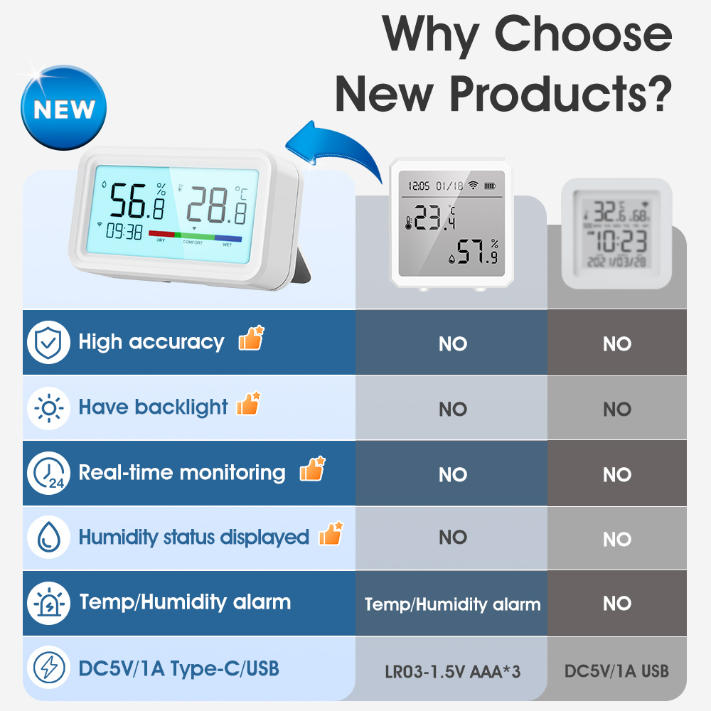 WiFi Indoor Hygrometer & Thermometer Sensor with Backlight, Remote App Control, Voice Integration for Alexa & Google Home – Tuya Smart Home Digital Images |